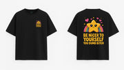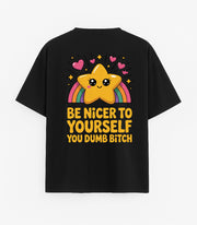 Oversizowy czarny Koszulka "Bądź milszy"