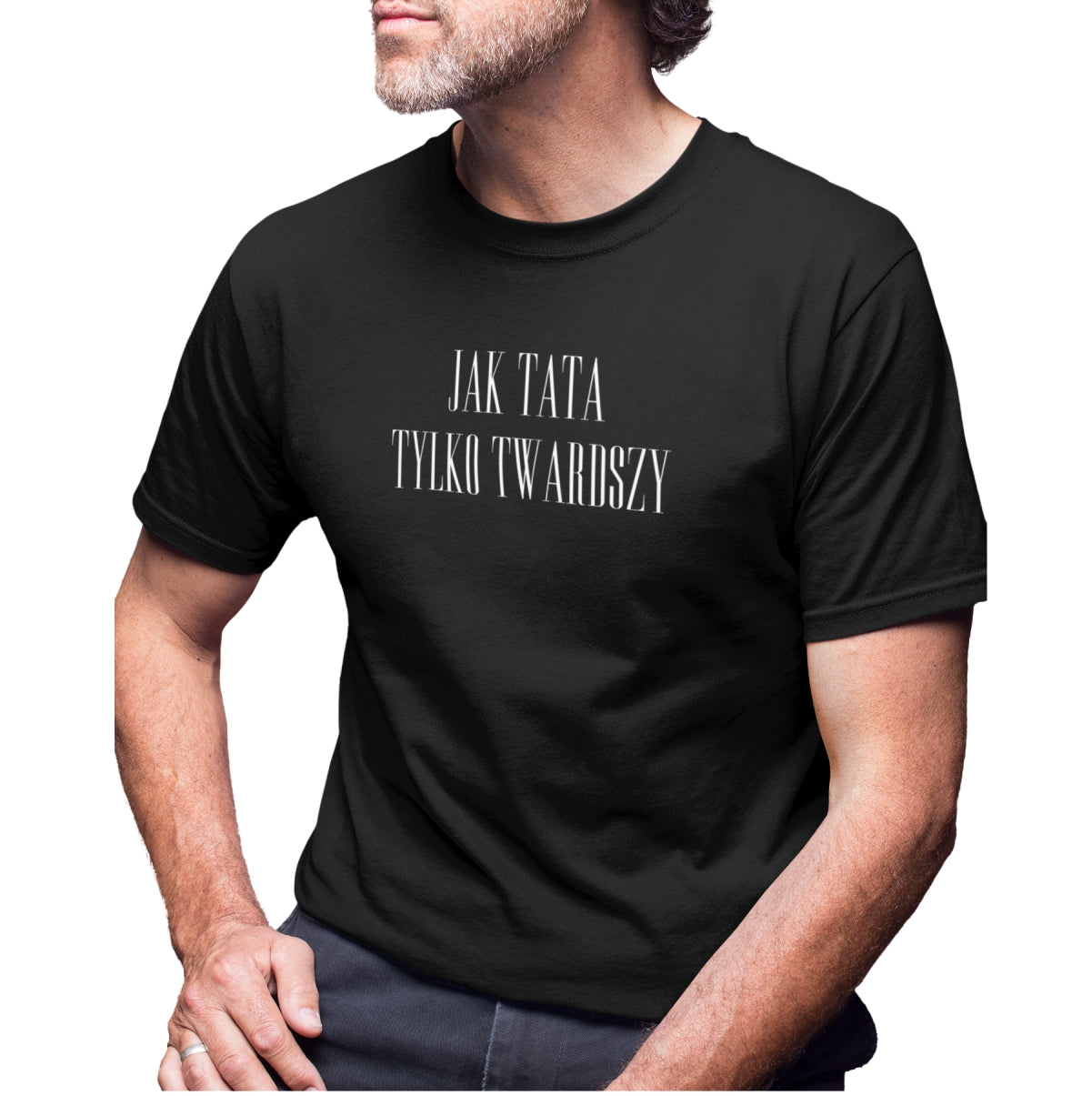 Czarna UNISEX koszulka Jak tata, tylko twardszy