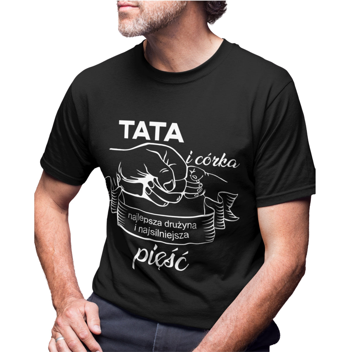 Czarna UNISEX koszulka Tata i córka - najlepsza drużyna i najsilniejsza pięść
