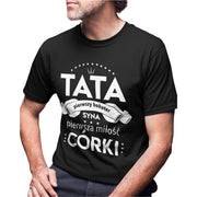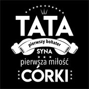 Czarna UNISEX koszulka Tata, pierwszy bohater syna, pierwsza miłość córki