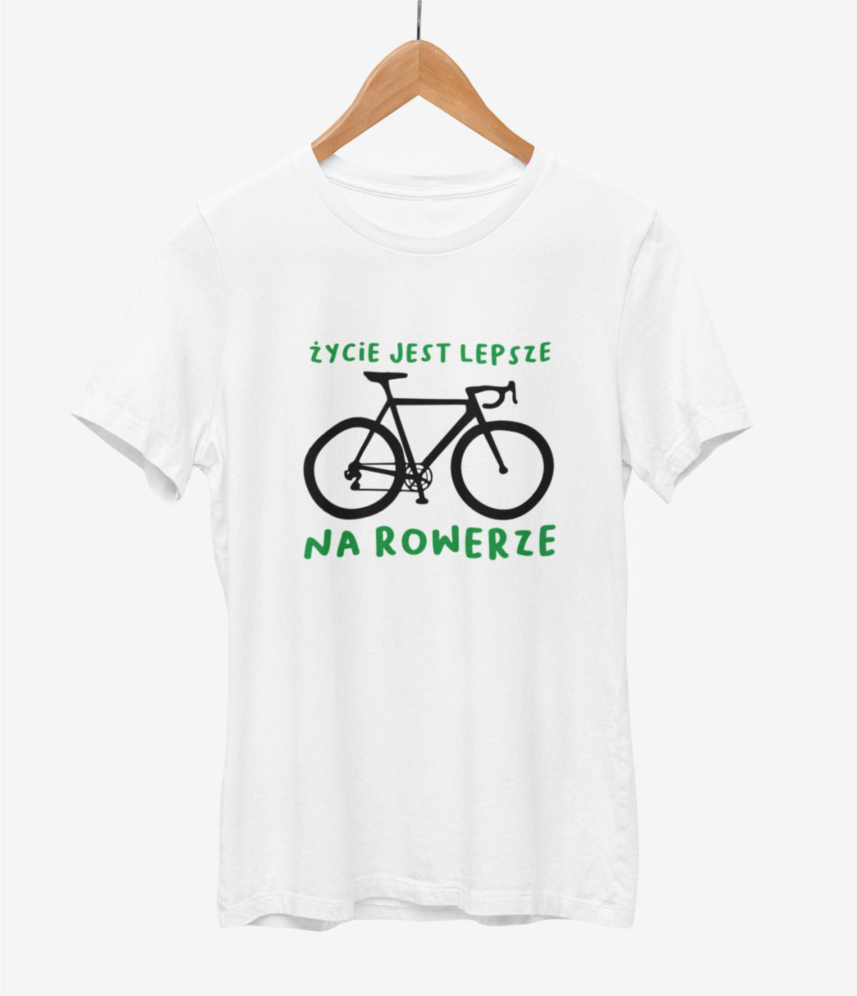Biała UNISEX koszulka "życie jest lepsze na rowerze"