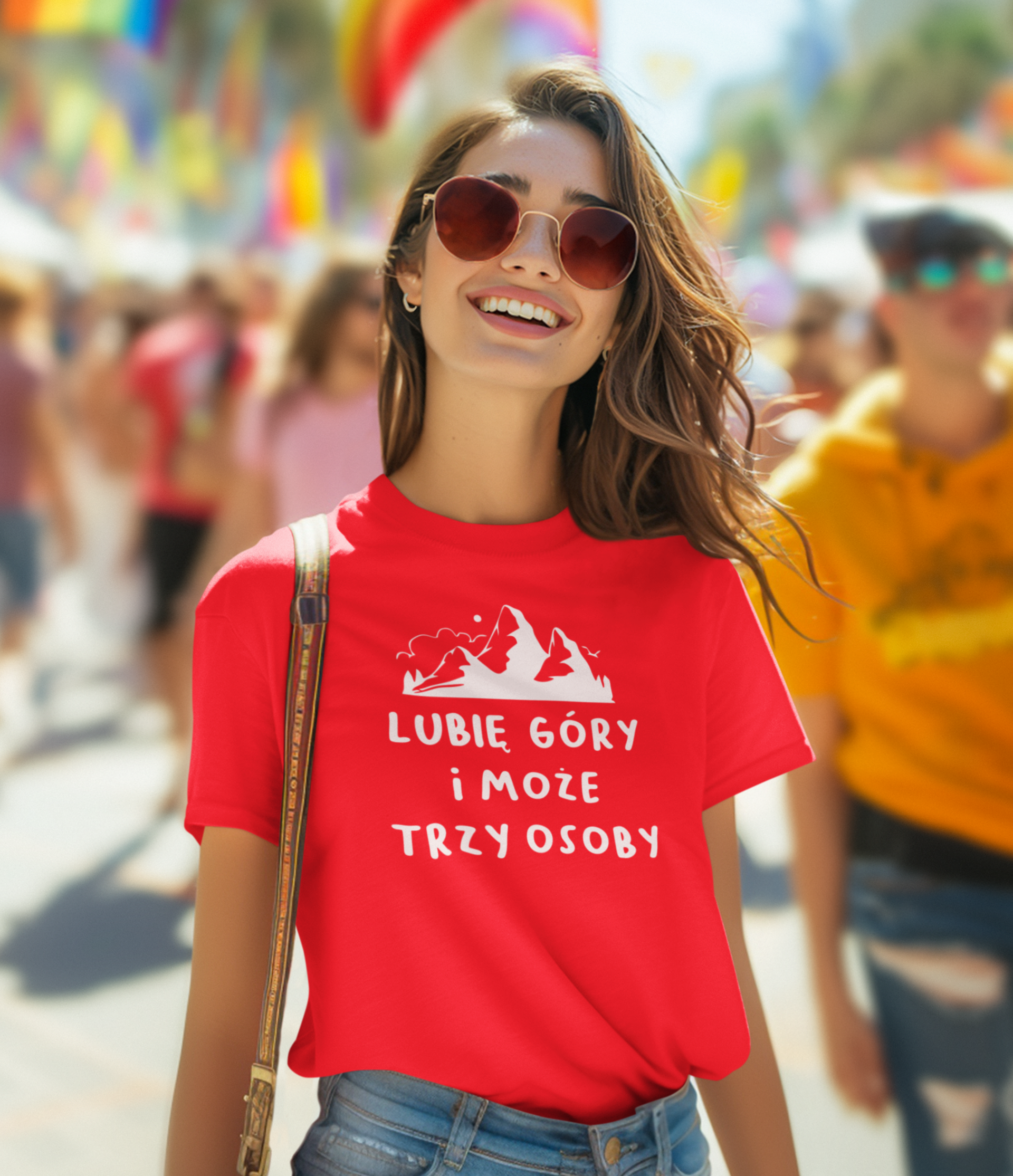 Czerwona UNISEX koszulka "Lubię góry i może trzy osoby"