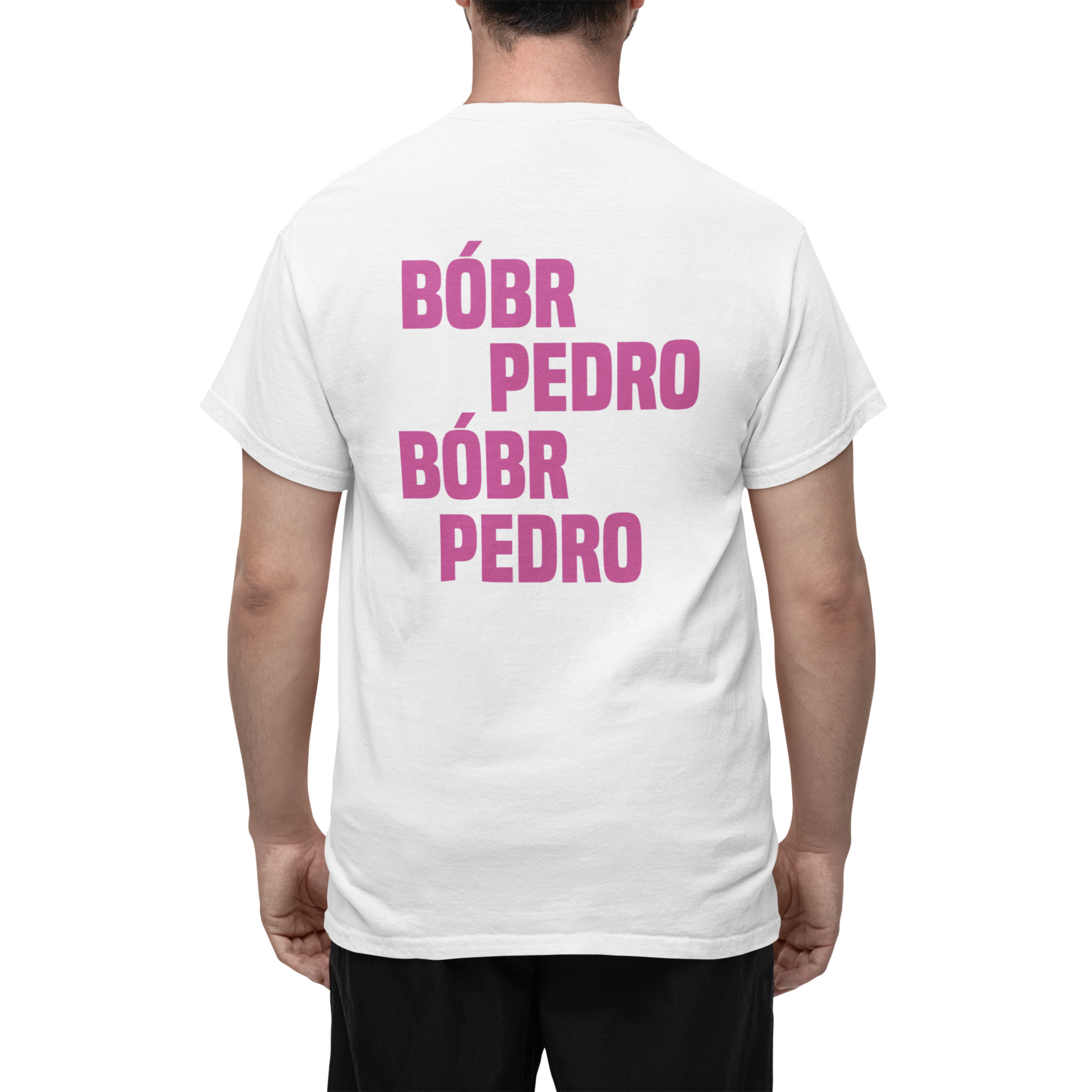 Biała koszulka "BÓBR / PEDRO" Z NADRUKIEM NA PLECACH
