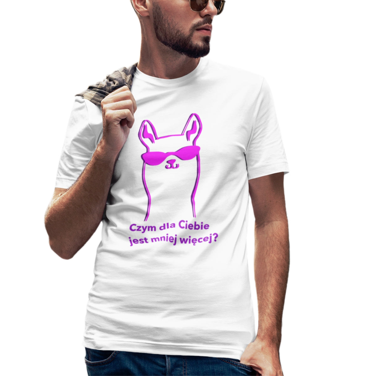 Biała UNISEX koszulka Czym dla Ciebie jest mniej więcej?