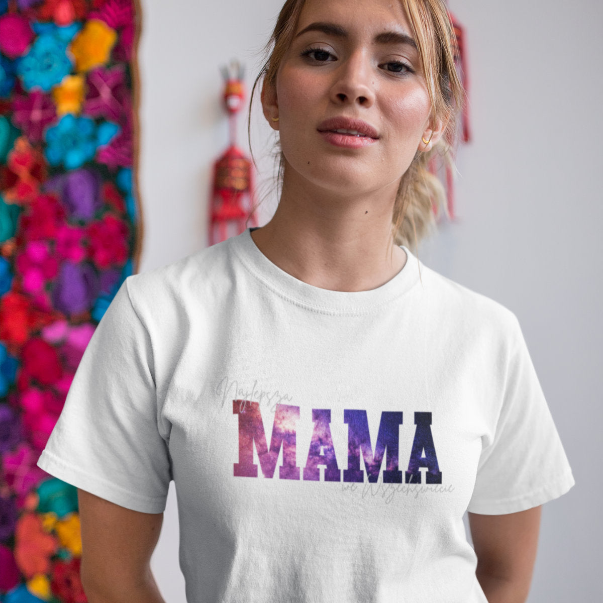 Biała UNISEX koszulka Najlepsza mama we wszechświecie