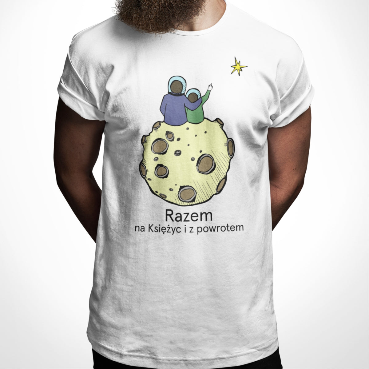 Biała UNISEX koszulka Razem na Księżyc i z powrotem