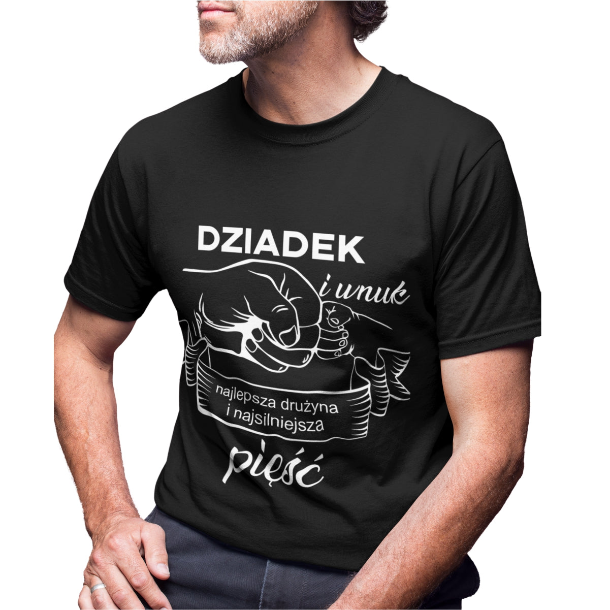Czarna UNISEX koszulka Dziadek i wnuk - najlepsza drużyna i najsilniejsza pięść