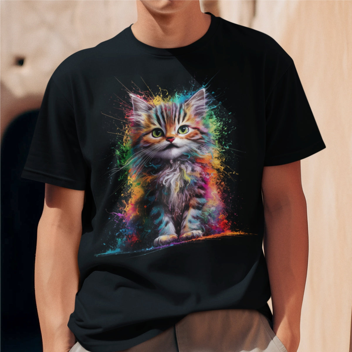 Czarna koszulka "Kotek w kolorach"
