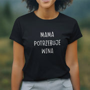 Czarny UNISEX T-shirt "Mama potrzebuje wina"
