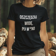 Czarny UNISEX T-shirt "Oszczędzaj wodę, pij wino"