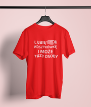 Czerwona koszulka "Lubię koszykówkę i może trzy osoby"