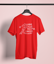 Czerwona UNISEX koszulka "Lubię piłkę ręczną i może trzy osoby"