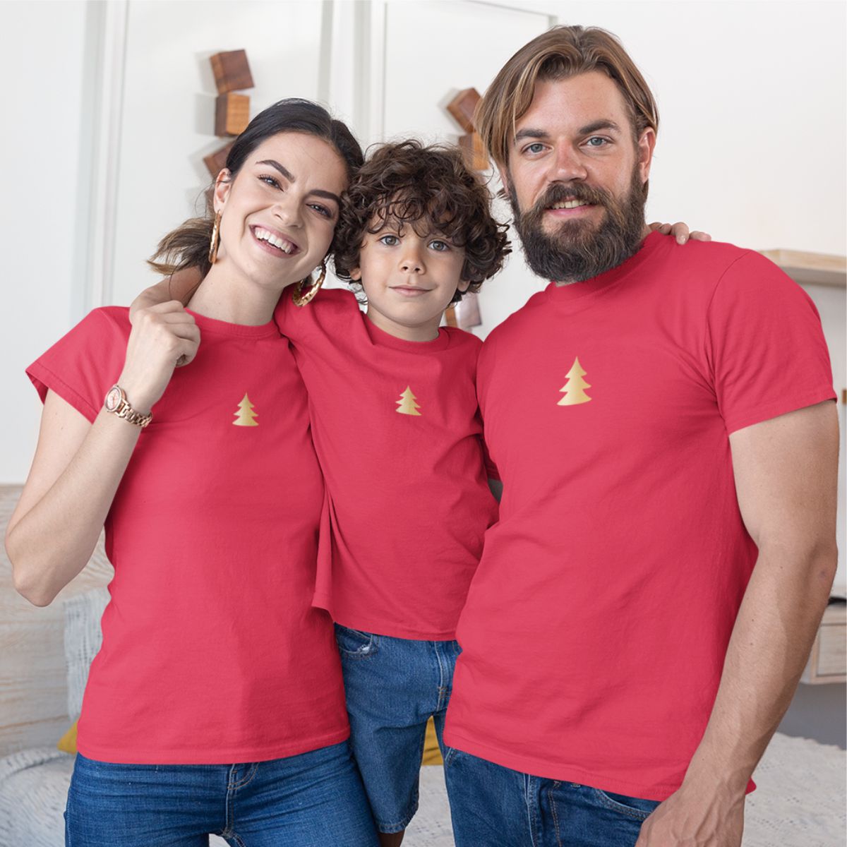 Czerwone koszulki UNISEX dla rodzin "Złota choinka"