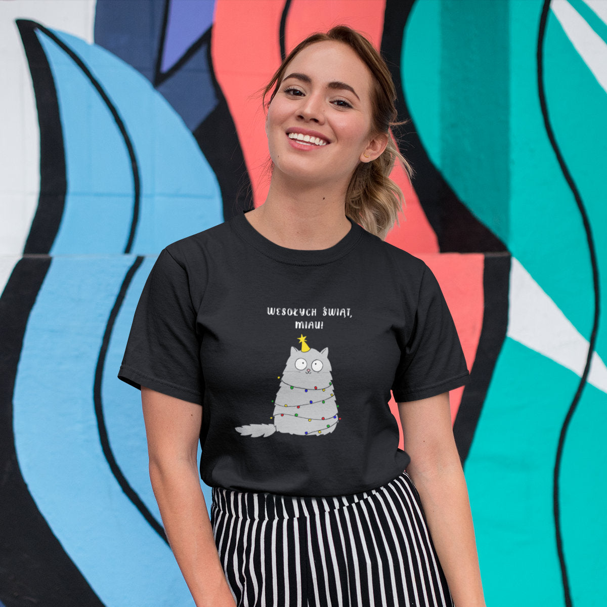 Czarny UNISEX T-shirt Wesołych Świąt, Miau