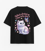 Duża czarna koszulka „Co za czasy”